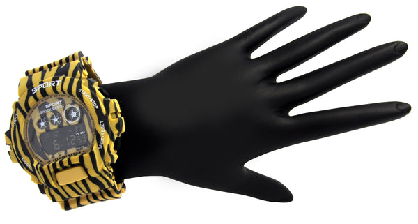 Yellow Shock Resistant LCD Wrist Watch Bright Yellow Color Case with Silicone band Face Diameter: 48mm Thickness:12mm G-Shock Style Looking Design Stylish and trendy with scratch resistant mineral glass High Quality Japanese fine-tuned...