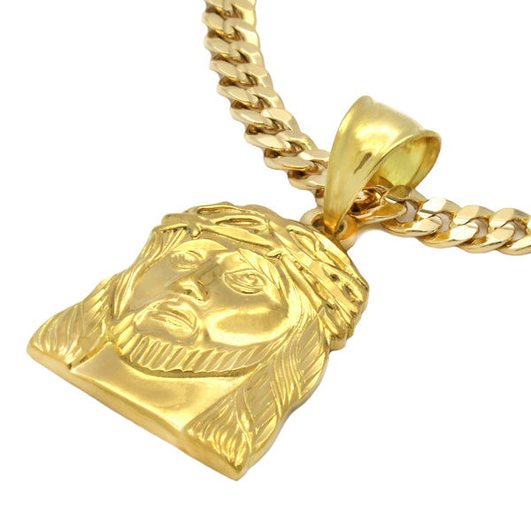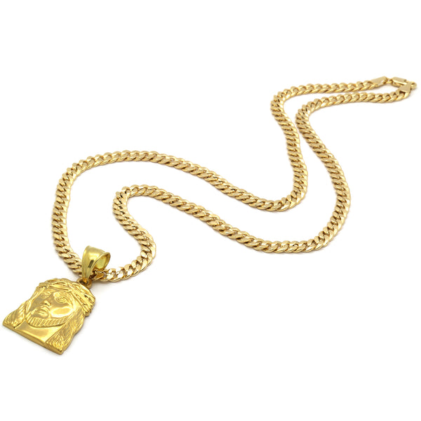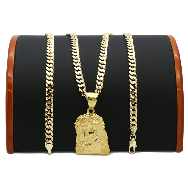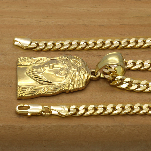 14K Gold Filled Small Necklace Pendant 14K Gold JESUS FLAT PENDANT with 5mm 24" CUBAN Chain Gold Filled Over Brass Makes this Necklace Look & Feel as a Real Gold...