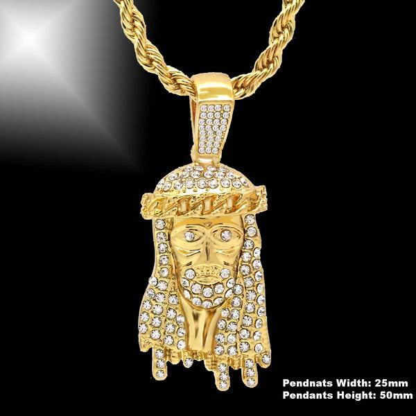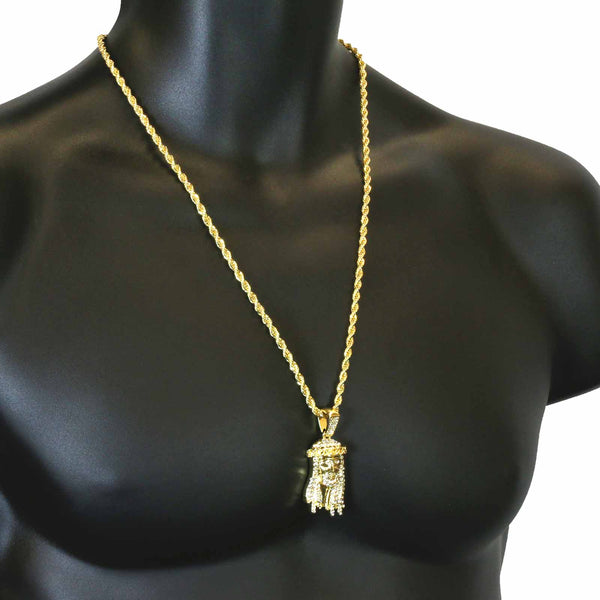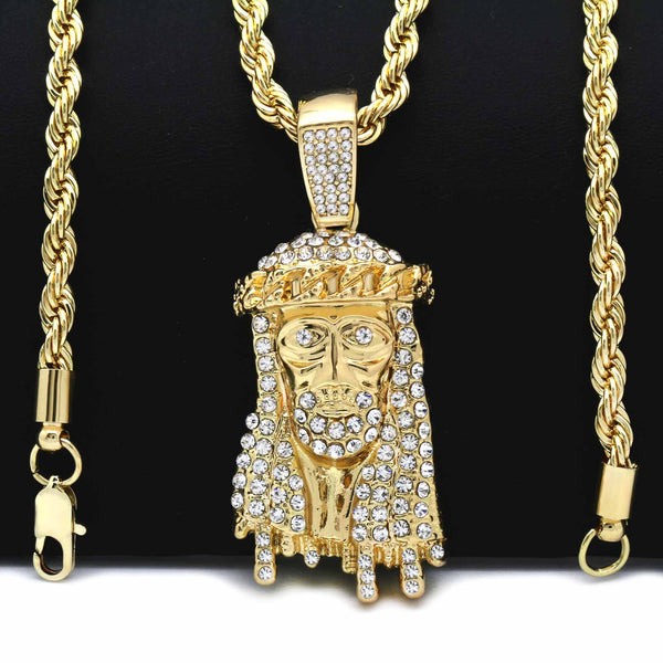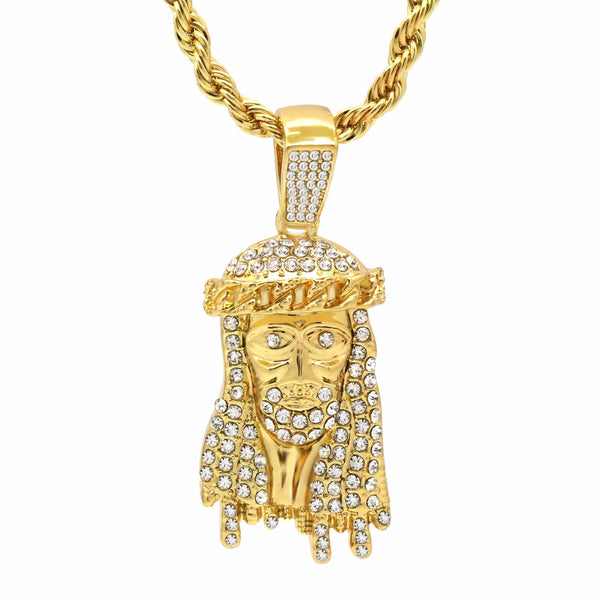 JESUS PENDANT WITH GOLD ROPE CHAIN