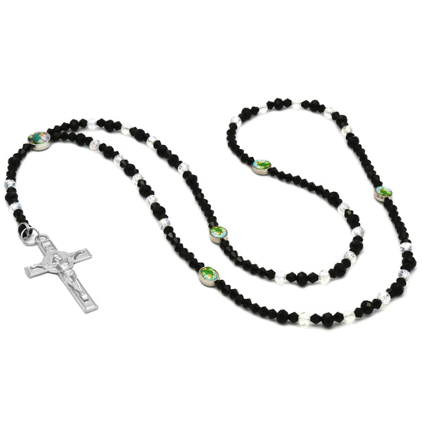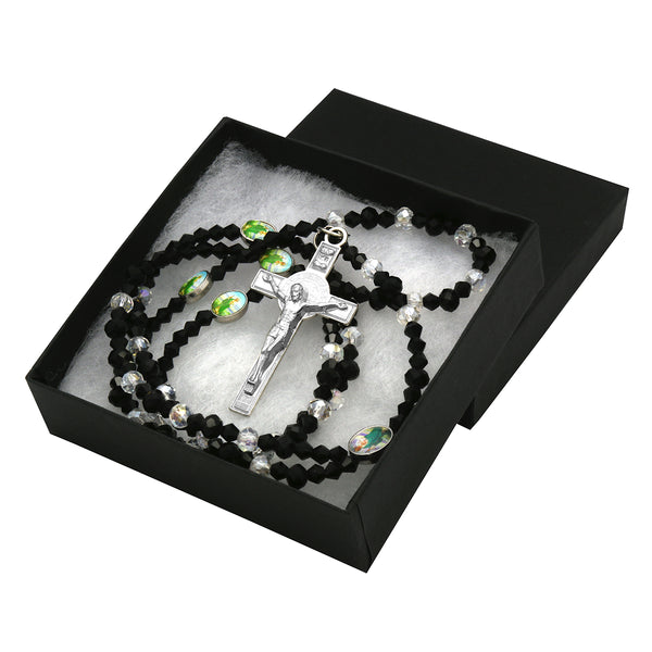 Black Sanjudas Epoxy Black Crystal Rosary With Cross Pendant