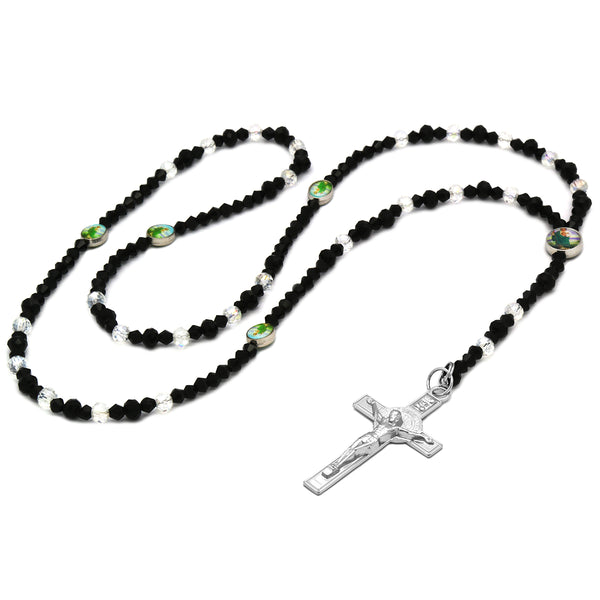 Black Crystal Beads Rosary With Sanjudas Middle & Cross Pendants Fashion Religious Jewelry Necklace that fit for all, Men, Women, Boy or Girl Each Bead of the Necklace is Carefully checked...