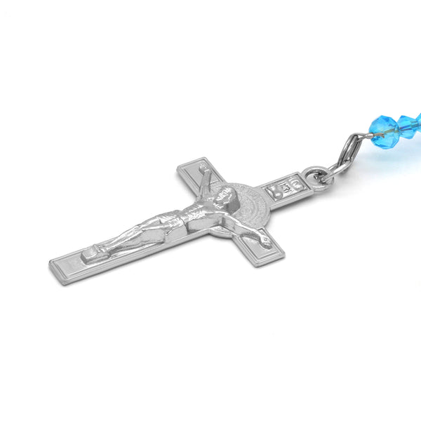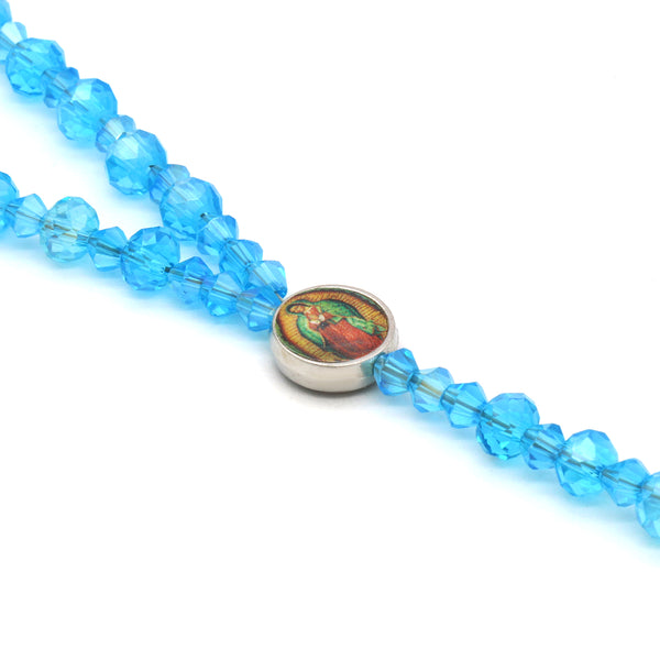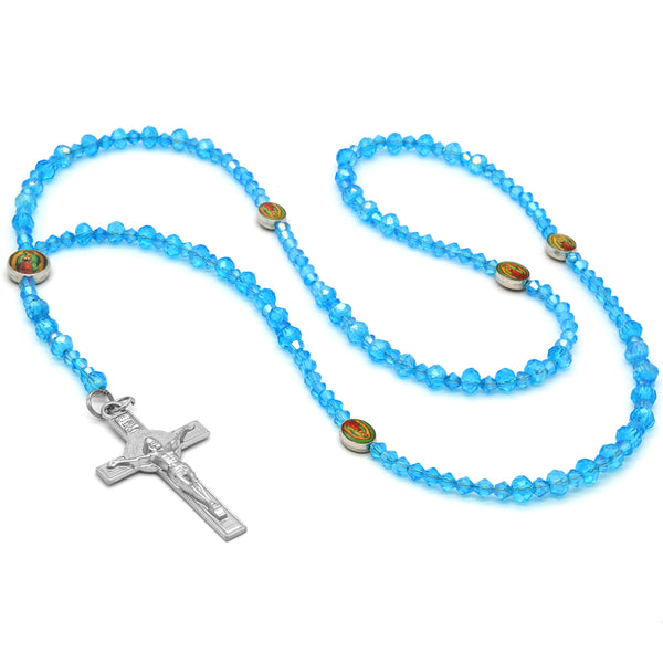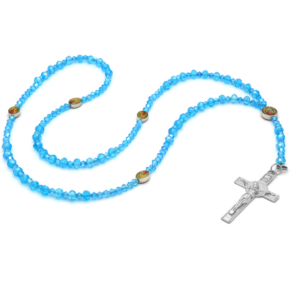 Lupe Epoxy Light Blue Crystal Rosary With Cross Pendant