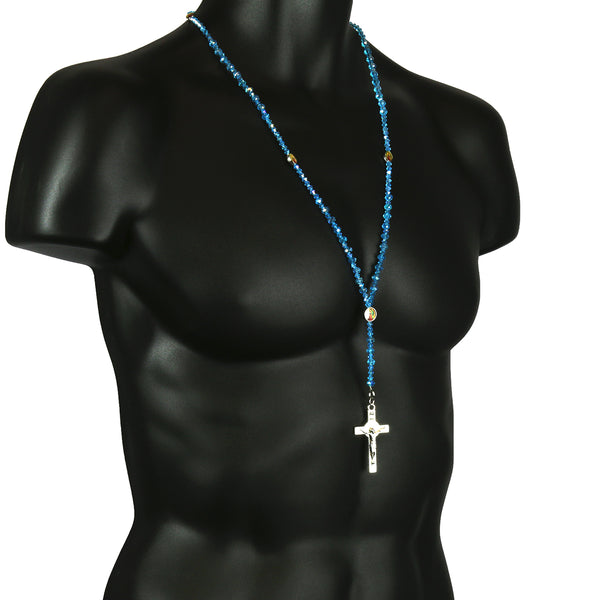 Light Blue Crystal Beads Rosary With Jesus Middle & Cross Pendants Fashion Religious Jewelry Necklace that fit for all, Men, Women, Boy or Girl Each Bead of the Necklace is Carefully...