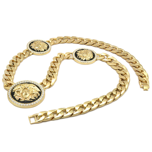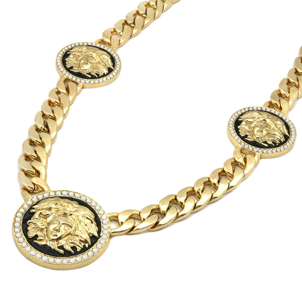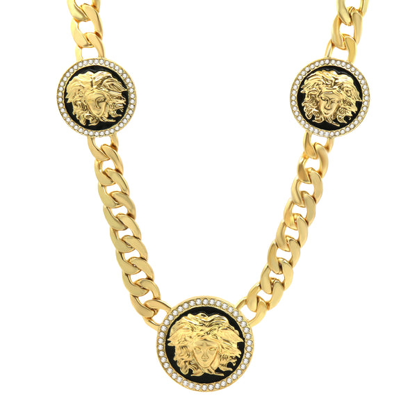 MEDUSA NECKLACE GOLD BLACK 3 MEDALLION