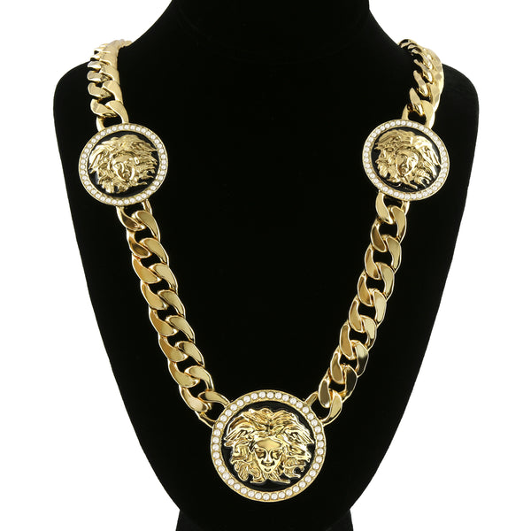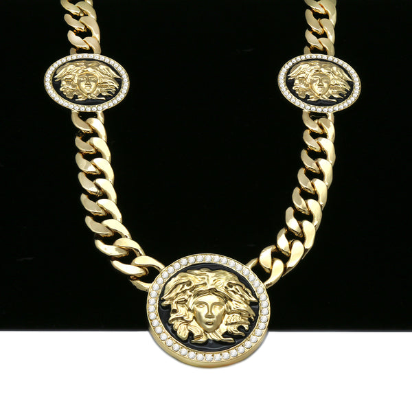 We created a perfectly crafted emblem of the Greek legend herself. Our Medusa pendant is the perfect accessory to make a maximum Bling Stand Out Hip Hop Bling 14K Gold Filled 3 Medallion Necklace...