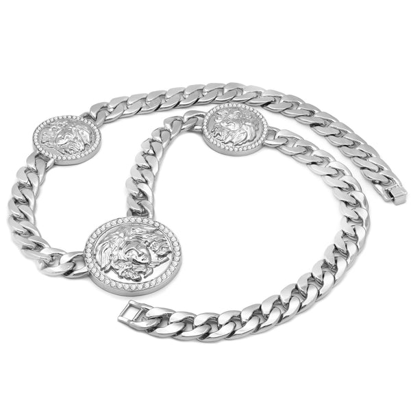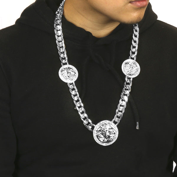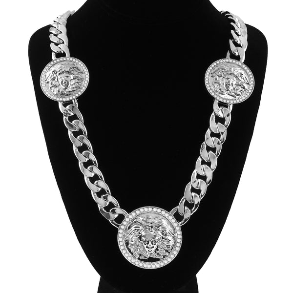 MEDUSA NECKLACE RHODIUM 3 MEDALLION