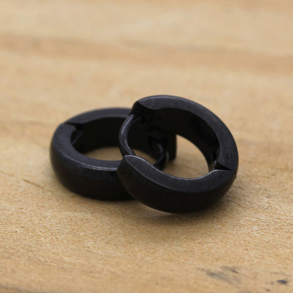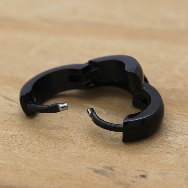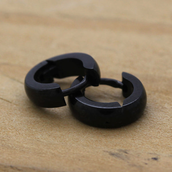 Plain Curved Huggie Hoop BLACK FILLED EARRINGS