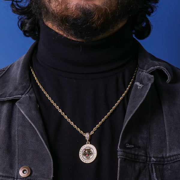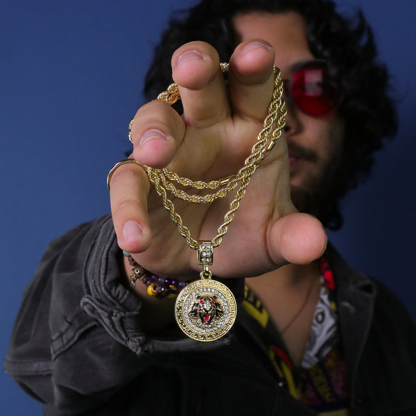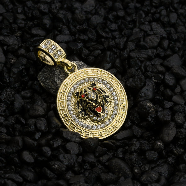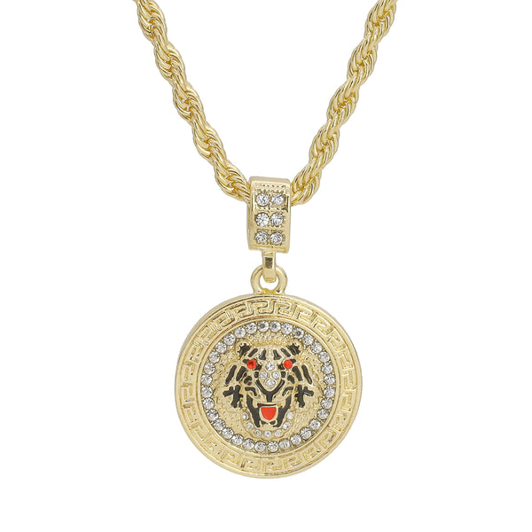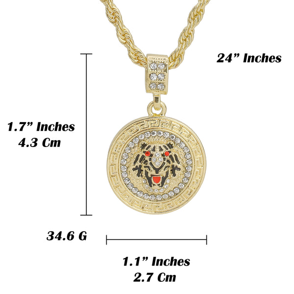 Red Eye Tiger Face Coin Pendant 24" Rope Chain Hip Hop 18k Jewelry