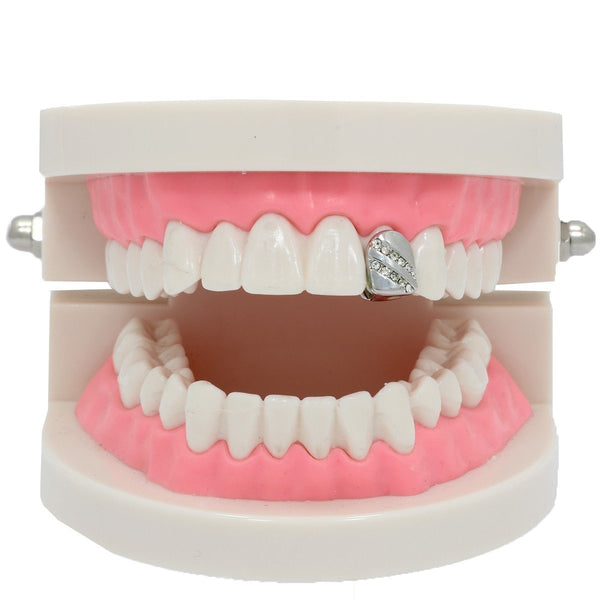 This listing is for theseĀ silver plated single tooth grillz. This single tooth capĀ  will give your mouth a subtle bling. Grillz come with a storage box for safe and sanitary...