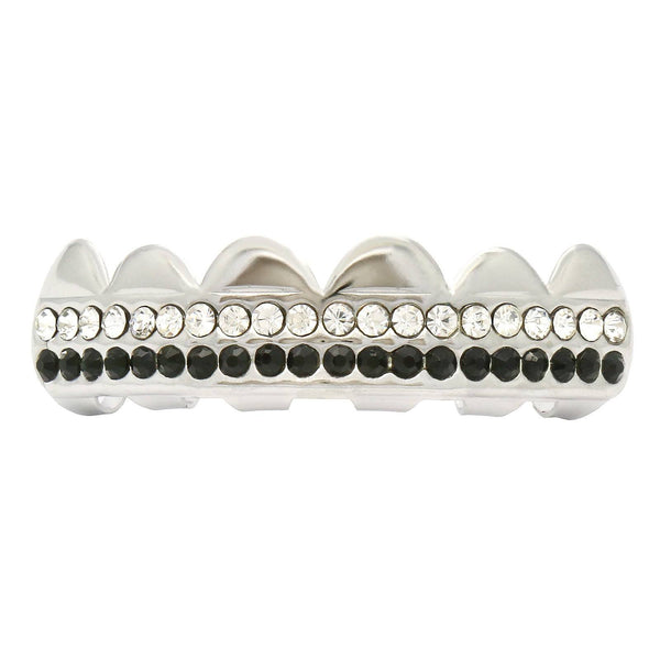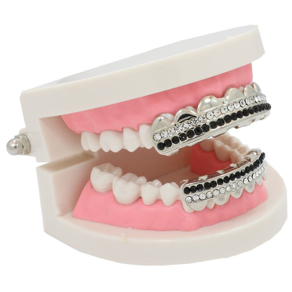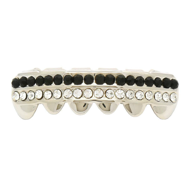 GRILLZ SET RHODIUM 2 ROW BK/CLEAR