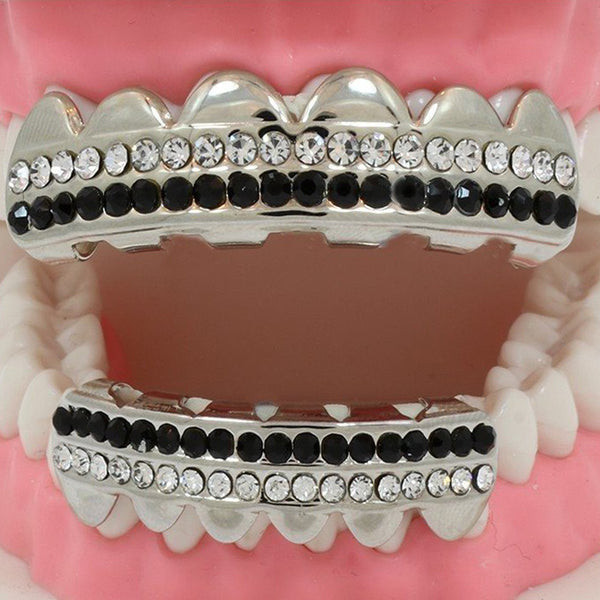 This listing is for Top and Bottom Grillz as A Set, The Grillz has 2 rows Clear/Black Stone Lined along the top of the grill and gives an impressive 4 Line diamond Look. The Black Stone...