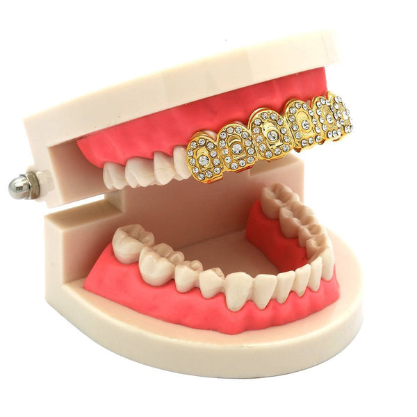 This listing is for these Gold Plated Iced out heart Grillz. The unique Heart arrangement of the stones on these grillz will give your Smile a shine that will be hard not to...
