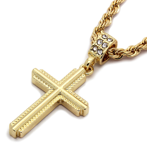 Braid Edge Cross Pendant Necklace