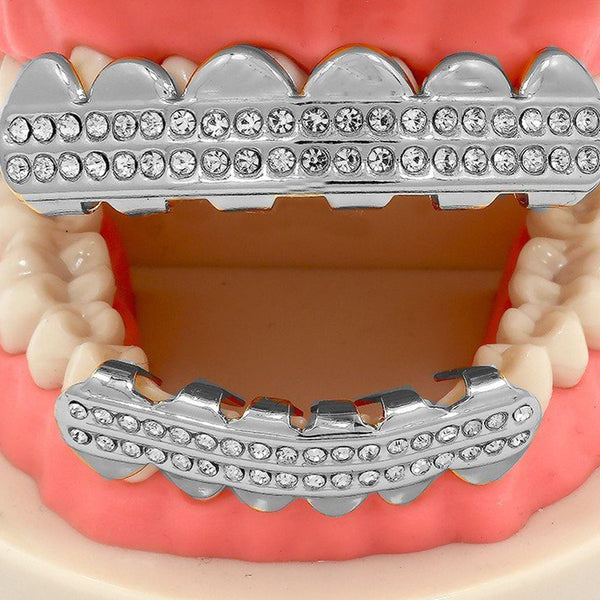 GRILLZ SET 2ROW SILVER BLINGKINGSTAR