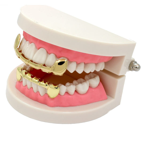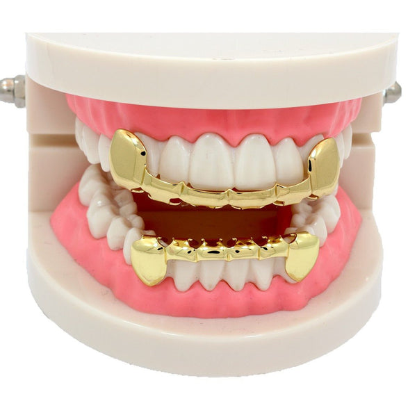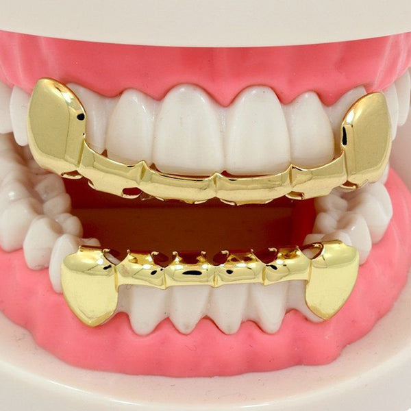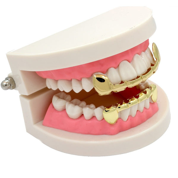 You are about to have Top and Bottom Grillz as a Set, the grill is Simple gold look with half cut in the middle and it will be shown as gold ivory...