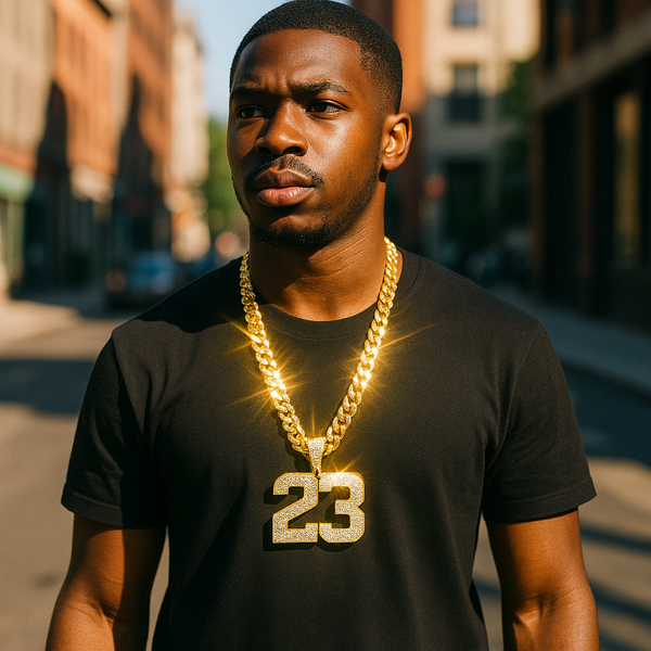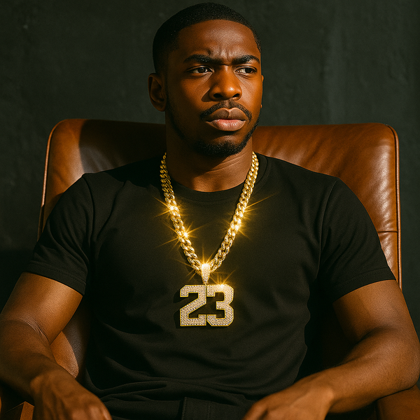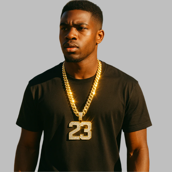 Celebrate legendary greatness with our Gold 23 Pendant Necklace, paired with a bold 10mm Miami Cuban Link Chain. This iced-out tribute features the iconic number "23"—a symbol of excellence and...