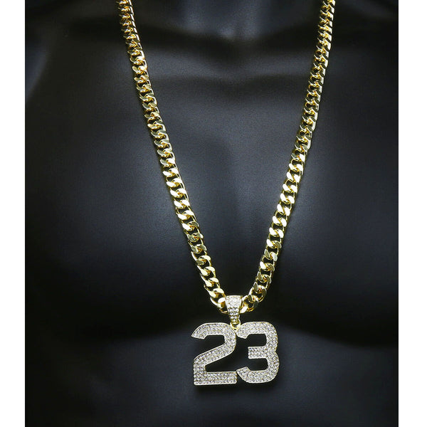Gold 23 Pendant Necklace – 10mm Miami Cuban Link Chain (30")
