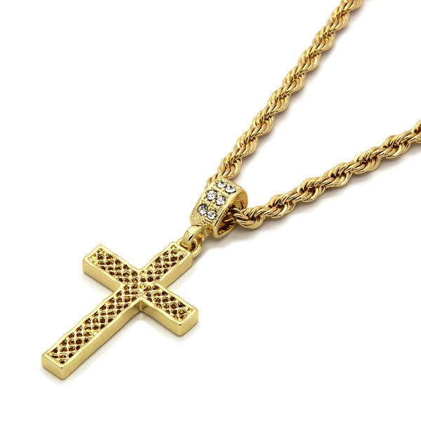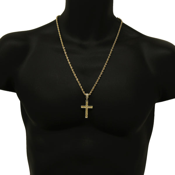 Color: Gold Size: Pendant--25mm X 55mm / Chain--4 mm 24"Inches Hip Hop Bling 14K Real Gold Filled Necklace Pendant 14K Gold Filled Iced Out Cross Hip Hop Pendant with 4 mm...