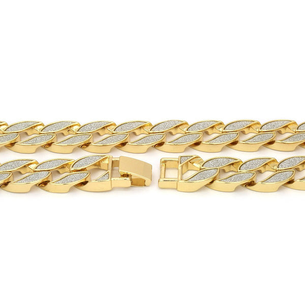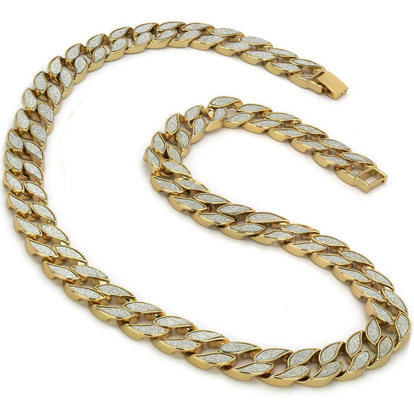 The strong, tightly-spaced links of our newest 18 mm Stardust Miami Cuban Link Necklace makes for a Chunky but still Sleek and Shiny design. The Sandblast Bling makes it Look...