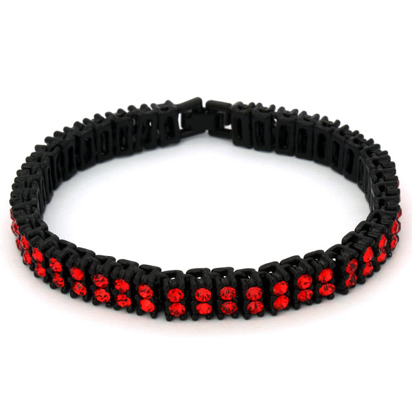 TENNIS BRACELET 2 LINE BK/RED