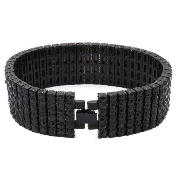Elegant BK Filled FULLY Iced Out BLACK CZ TENNIS Bracelet. Tarnishing Free "Life Time Guarantee" on Air Condition. High-impact BK Plating over Brass. Lustrous Finish in front of every link. Carefully...