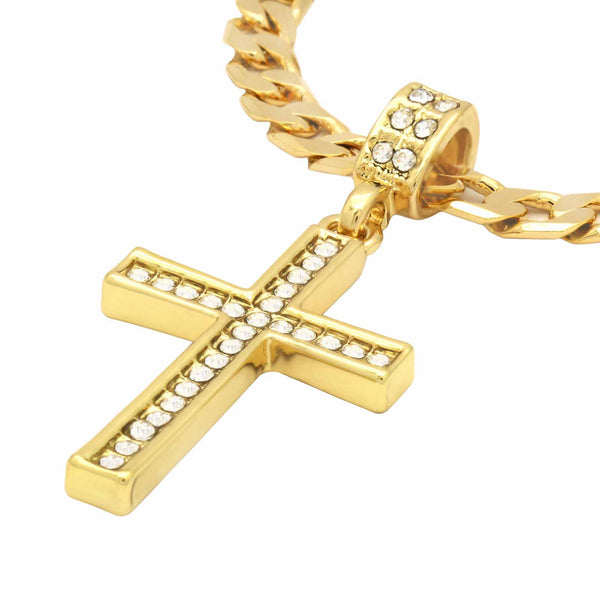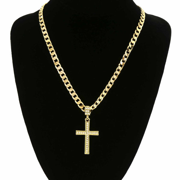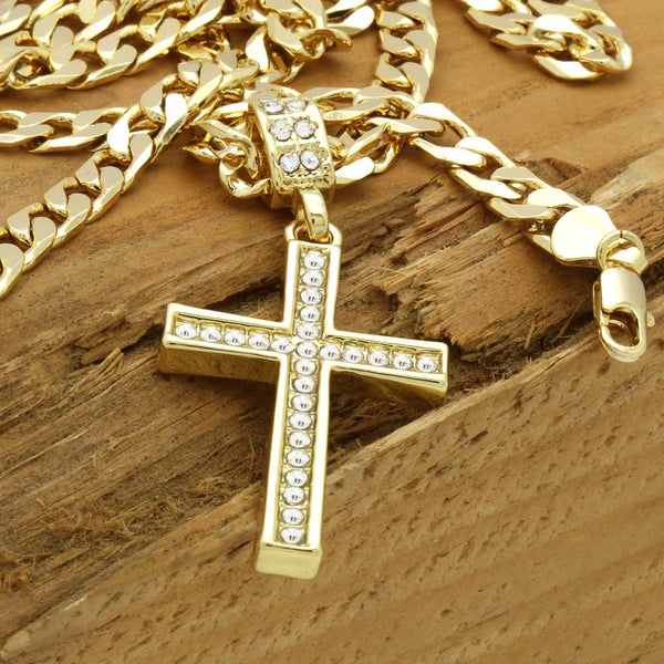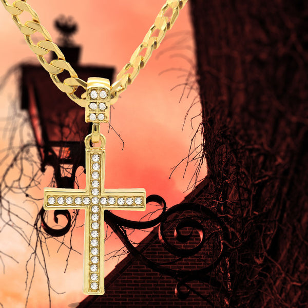 Hip Hop Bling 14K Real Gold Filled Necklace Pendant 14K Gold Filled Iced Out Cross Hip Hop Pendant with 6mm 24" Cuban Chain Gold Filled Over Brass Makes this Necklace Look...