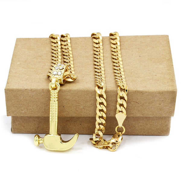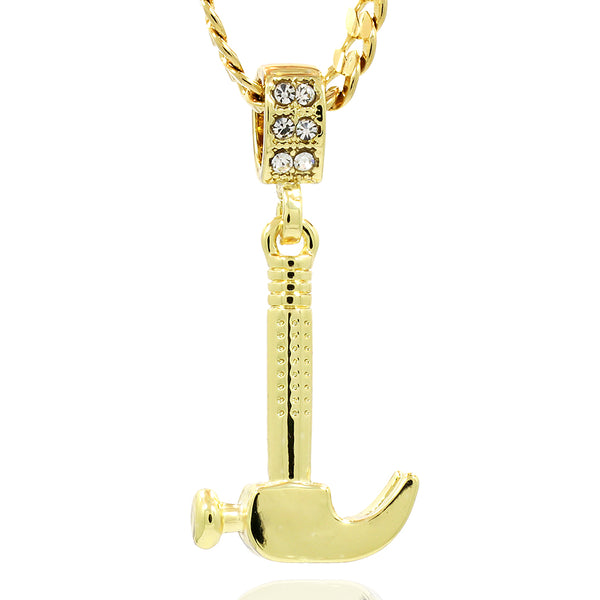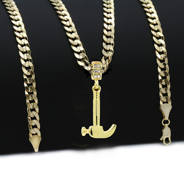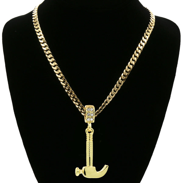 Hip Hop Bling 14K Real Gold Filled Necklace Pendant 14K Gold Filled Iced Out hammer Hip Hop Pendant with 5mm 24"Cuban Chain Gold Filled Over Brass Makes this Necklace Look...