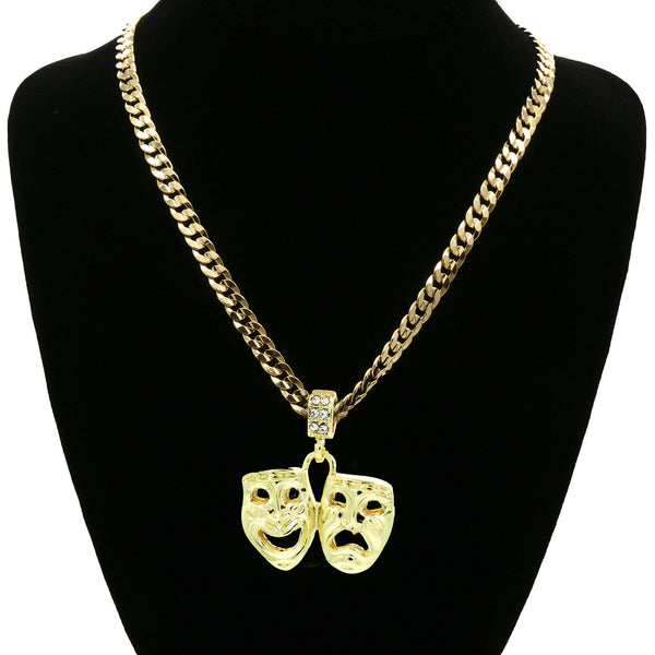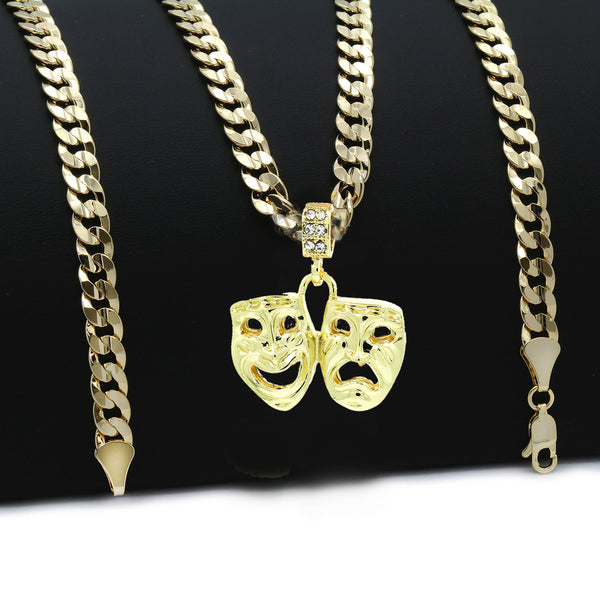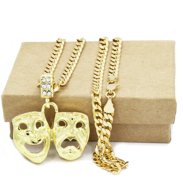 Hip Hop Bling 14K Real Gold Filled Necklace Pendant 14K Gold Filled Iced Out Cry-Smile Hip Hop Pendant with 5mm 24"Cuban Chain Gold Filled Over Brass Makes this Necklace Look...