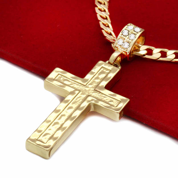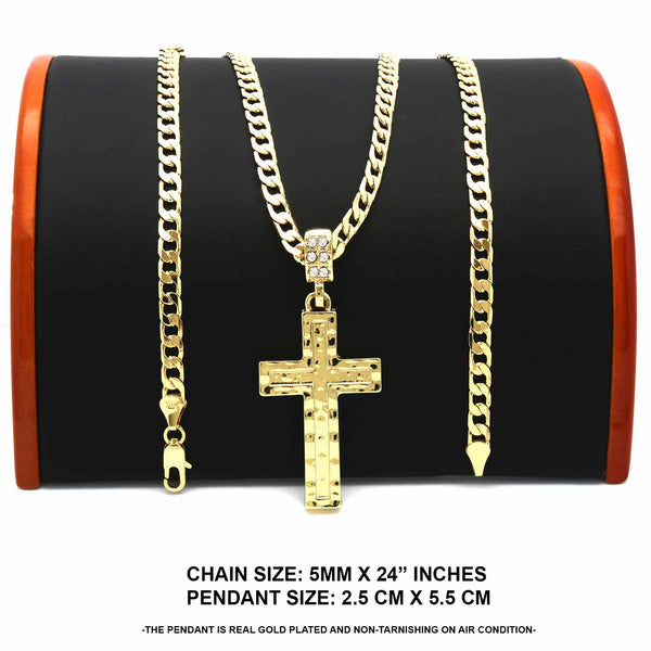 Hip Hop Bling 14K Real Gold Filled Necklace Pendant 14K Gold Filled Iced Out Cross Hip Hop Pendant with 5 mm 24" Cuban Chain Gold Filled Over Brass Makes this Necklace...