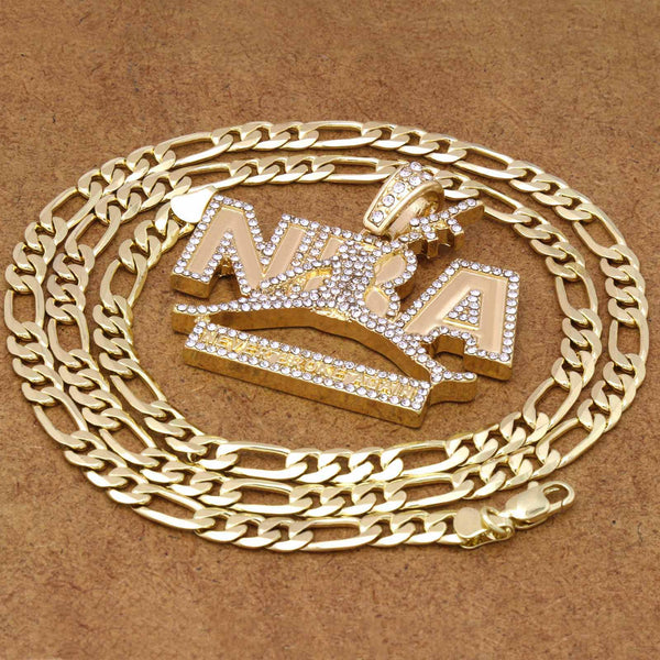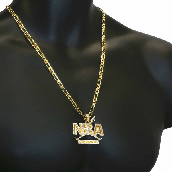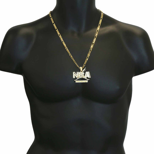 Hip Hop Bling 14K Real Gold Filled Necklace Pendant Fully Iced Out. 14K Gold Filled Iced Out Cross Hip Hop Pendant with 5 mm 24" Figaro Chain Gold Filled Over Brass...
