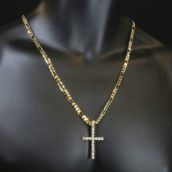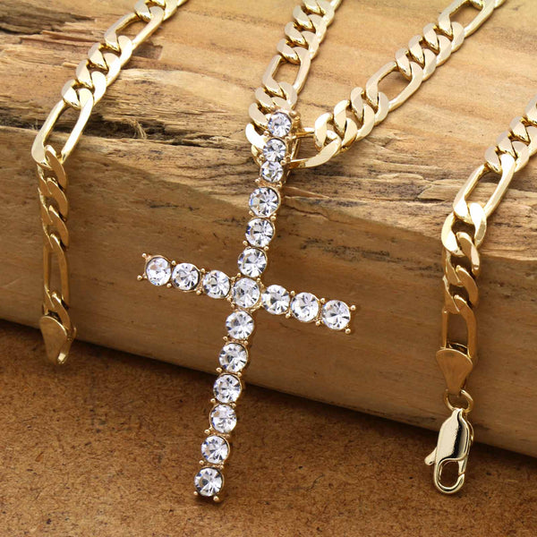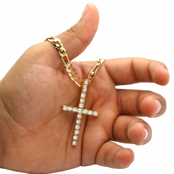 Color: Gold Size: Pendant--50 mm X 30 mm / Chain--5 mm 24"Inches Hip Hop Bling 14K Real Gold Filled Necklace Pendant 14K Gold Filled Iced Out Cross Hip Hop Pendant with...