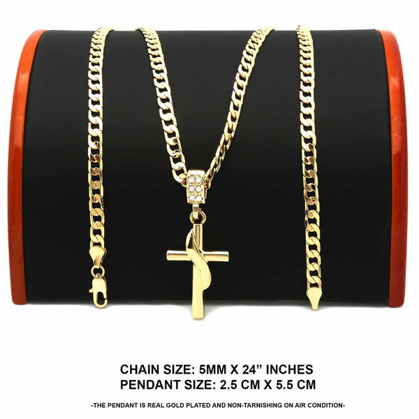 Hip Hop Bling 14K Real Gold Filled Necklace Pendant 14K Gold Filled Iced Out Cross Hip Hop Pendant with 5 mm 24" Cuban Chain Gold Filled Over Brass Makes this Necklace...