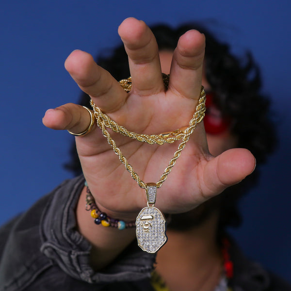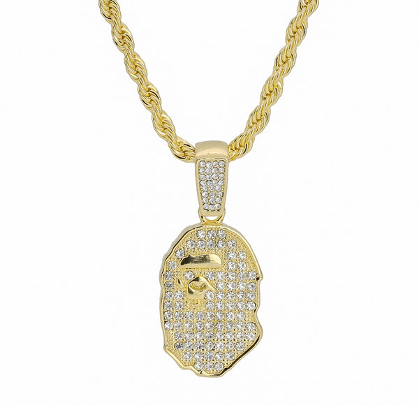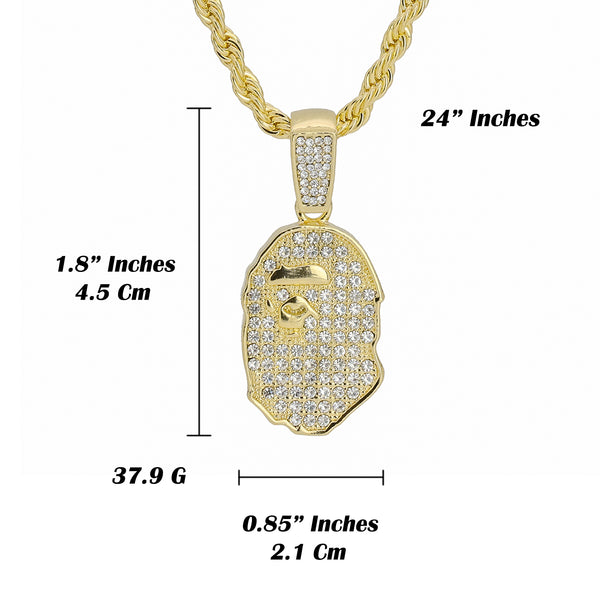 Bape Ape Pendant 24" Rope Chain Hip Hop 18k Jewelry