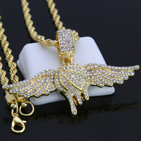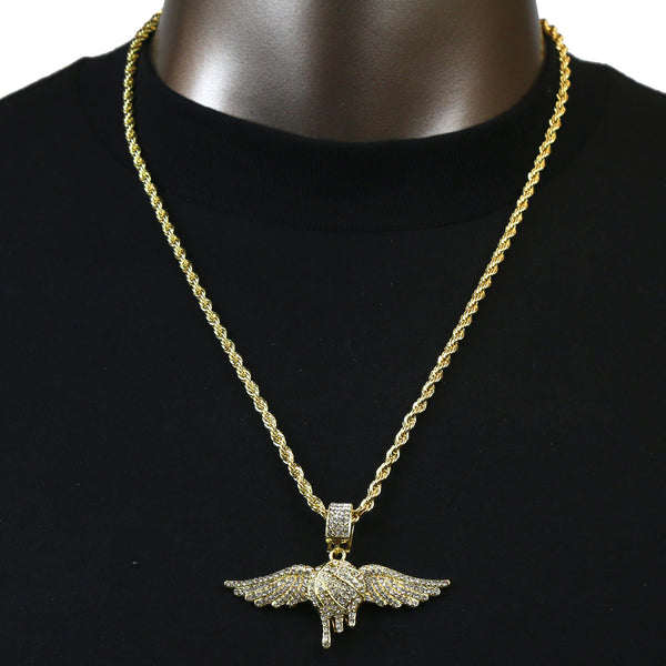 Winged Drip Basketball Pendant with Gold Rope Chain