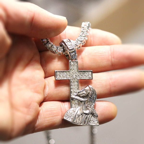 White GOLD TENNIS CHAIN 18" 20" Jesus Cross Pendant Bundle