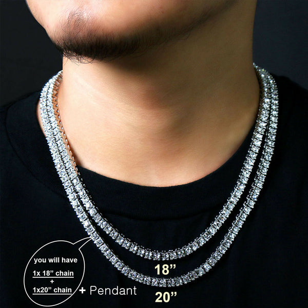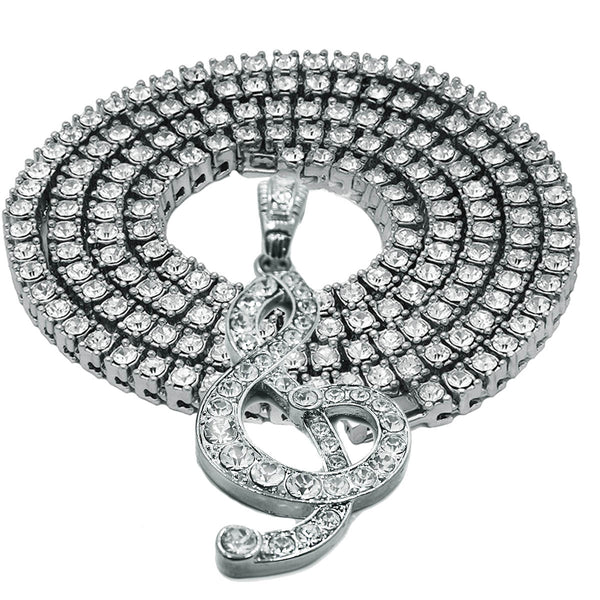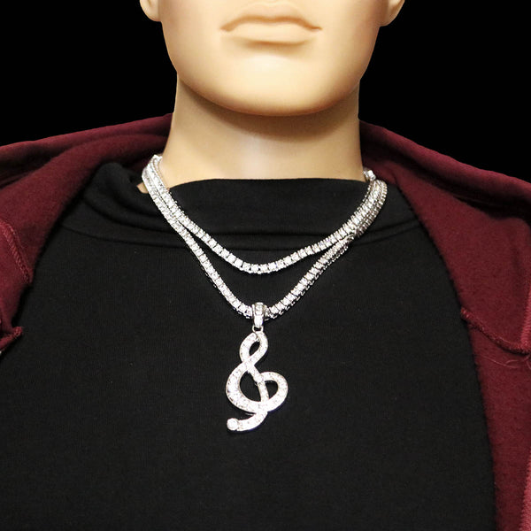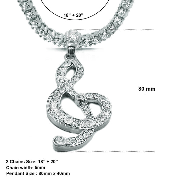 White GOLD TENNIS CHAIN 18" 20" Music Note Pendant Bundle