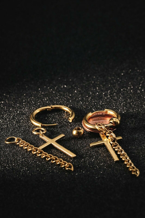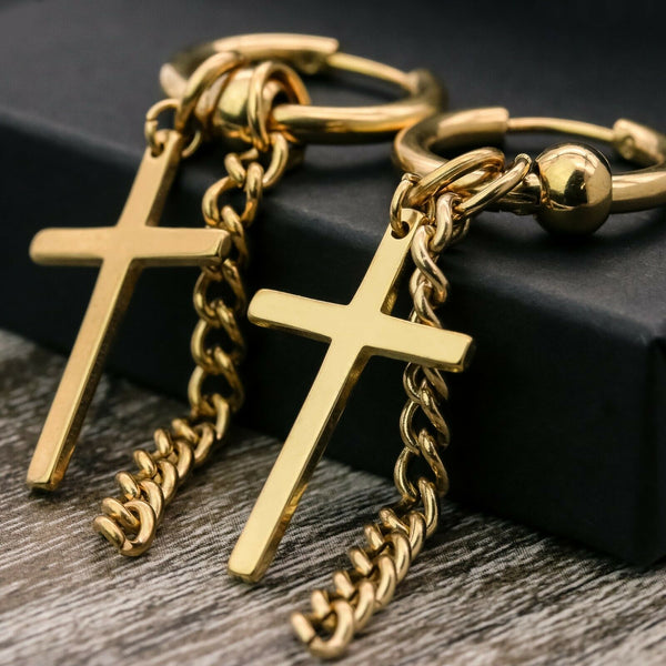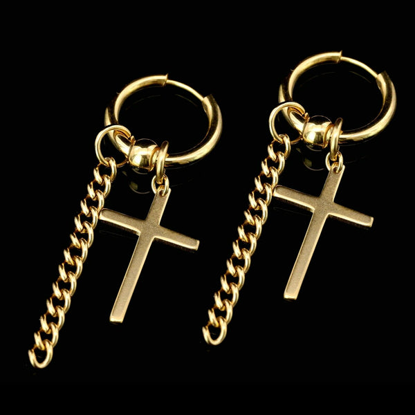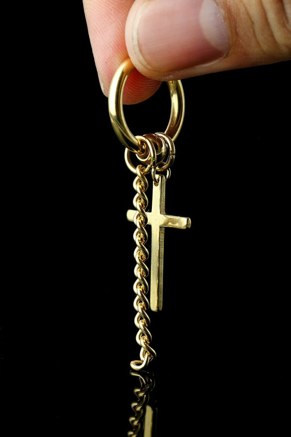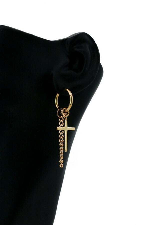 Gold Stainless Steel Plain Cross Dangle/Cuban Chain Gold Stainless Steel Filled Earring Measurements: 8mm Pierced Stud Earrings CLASP BACKS To Make You More Shiny and Confident. Wherever You Go, The EARRINGS...