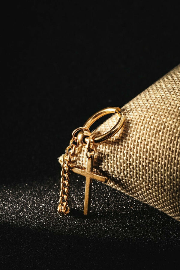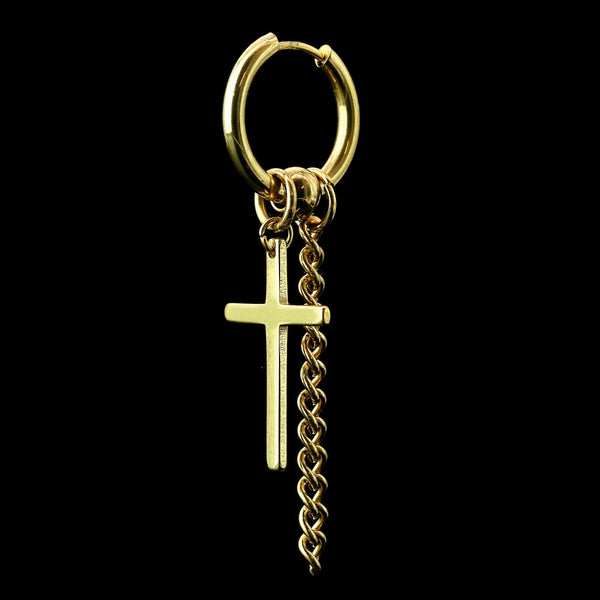 Cross Dangle/Cuban 18k Gold Stainless Steel Plain Earring