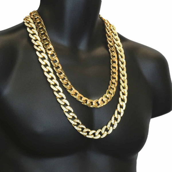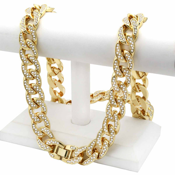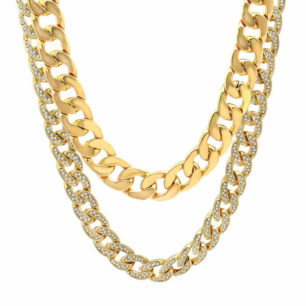 Elegant Fully ICED OUT Cuban Chain Necklace Makes You Shine Perfect. High-impact 14k Gold Plating over BrassĀ  LustrousĀ 14K Gold Finish in front of all links Fully Iced Out 18 mm/30"INCHES...