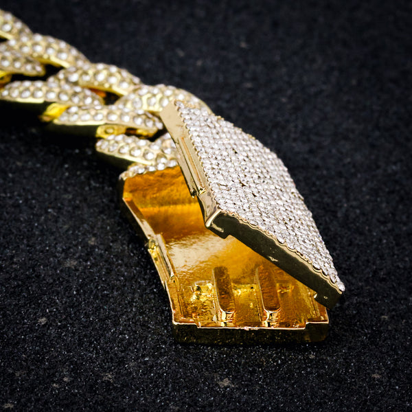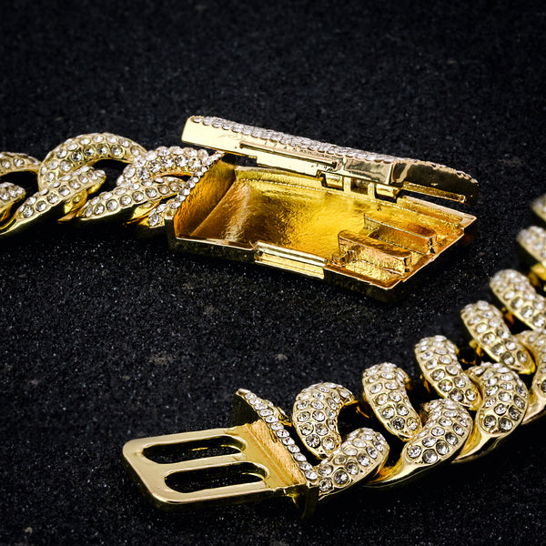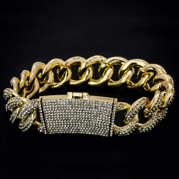 Cuban Link BRACELET Box Clasp 14k Gold Plated 17 mm 9" Iced out