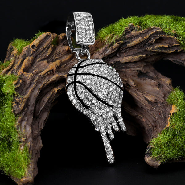 This listing is for One chain and Pendant Together. Color: Silver Size: Pendant--2" x 21/2" / Chain-- 5mm 20"Inches 14K Silver Filled Iced Out Drip Basketball Drip Basketball Hip Hop...