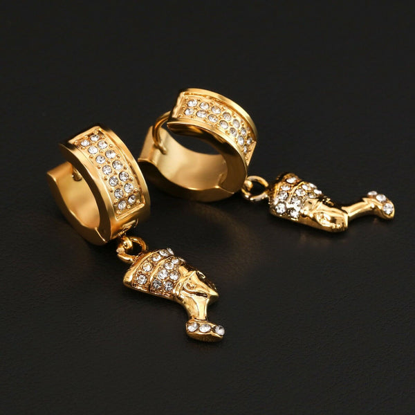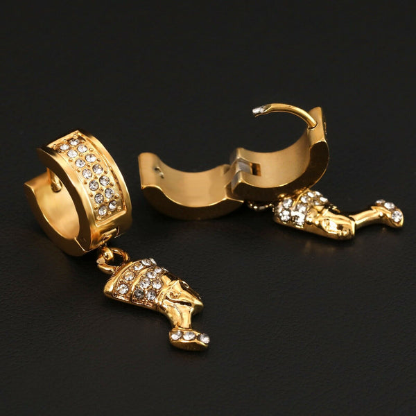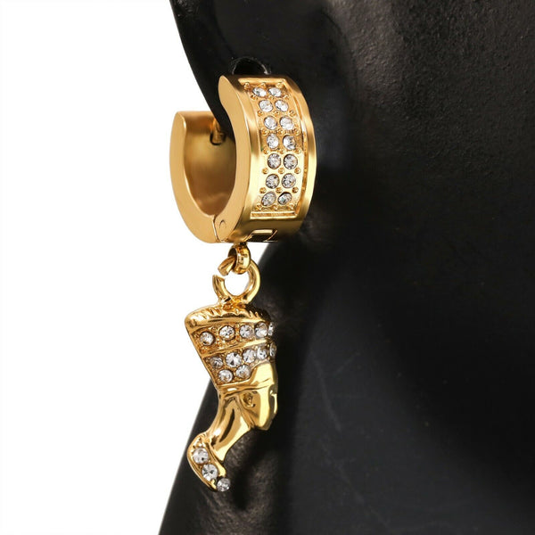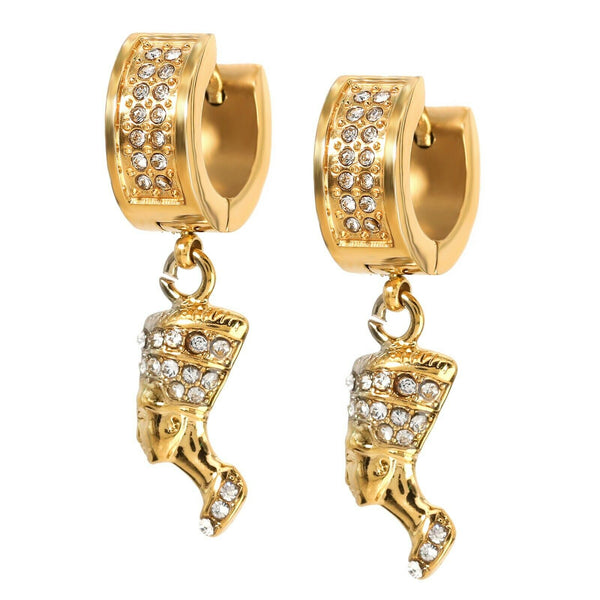 Cubic-Zirconia Gold Stainless Steal 2 Row Nefertiti Egypt HuggieHoop Earrings