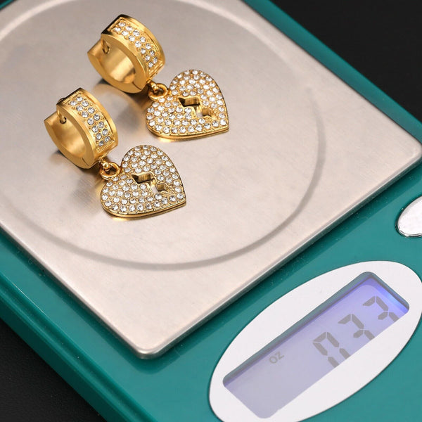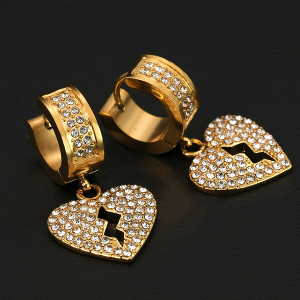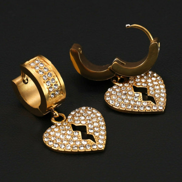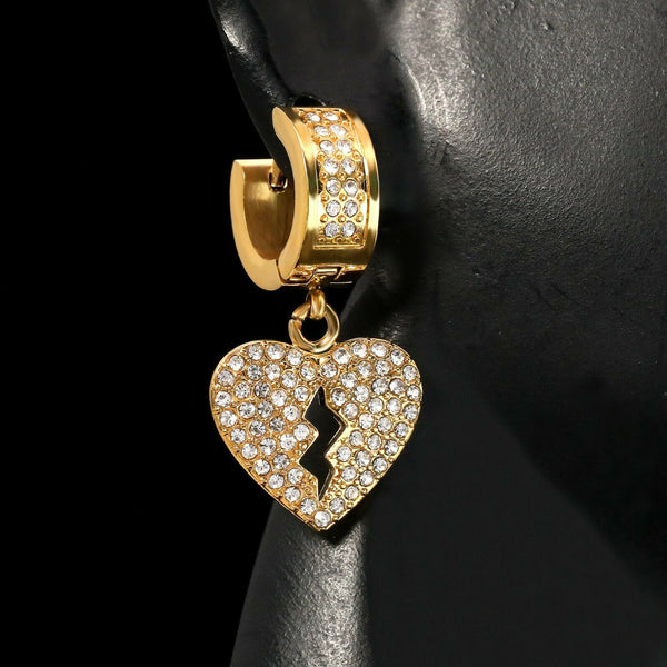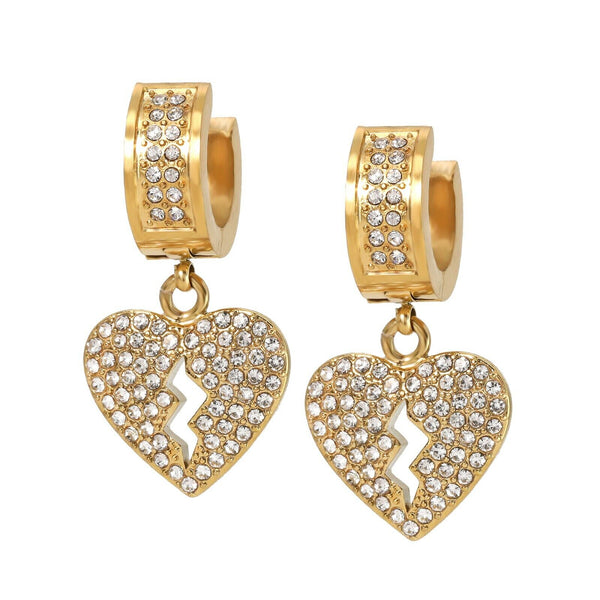 Cubic-Zirconia Gold Stainless Steal 2 Row Tiny Broken Heart Huggie Hoop Earrings