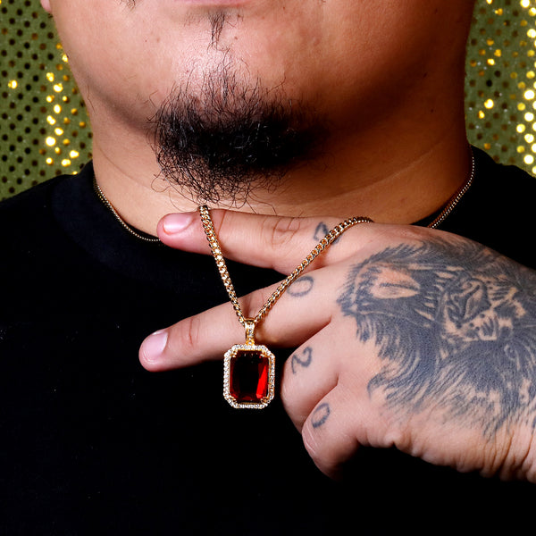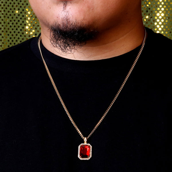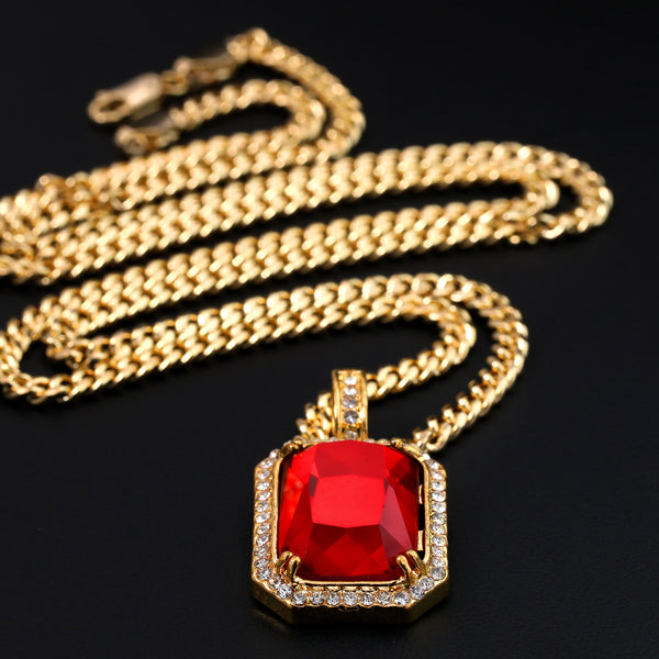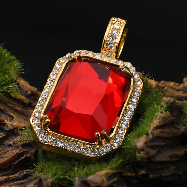 This listing is for One chain and Pendant Together. Color: Gold Size: Pendant--2" x 21/2" / Chain-- 3mm 24"Inches 14K Gold Filled Iced Out Mini Red Ruby Guadalupe Hip Hop Pendant...