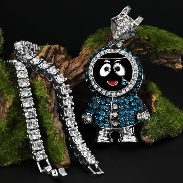 These are hot 2 Pcs of (18"+20")tennis chains with trendy Small Eskimo Pendant which made with incredible details and craftsmanship. 3 wearing way:1. CZ tennis chain + pendants; 2. CZ...