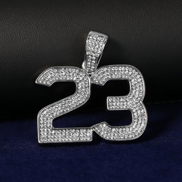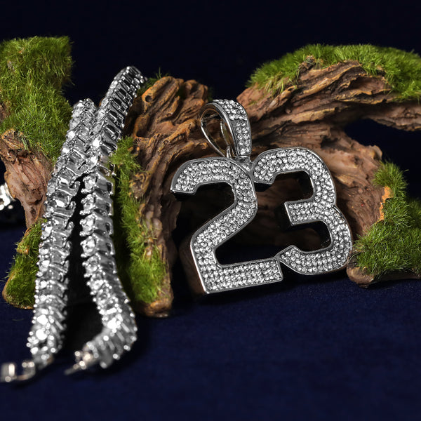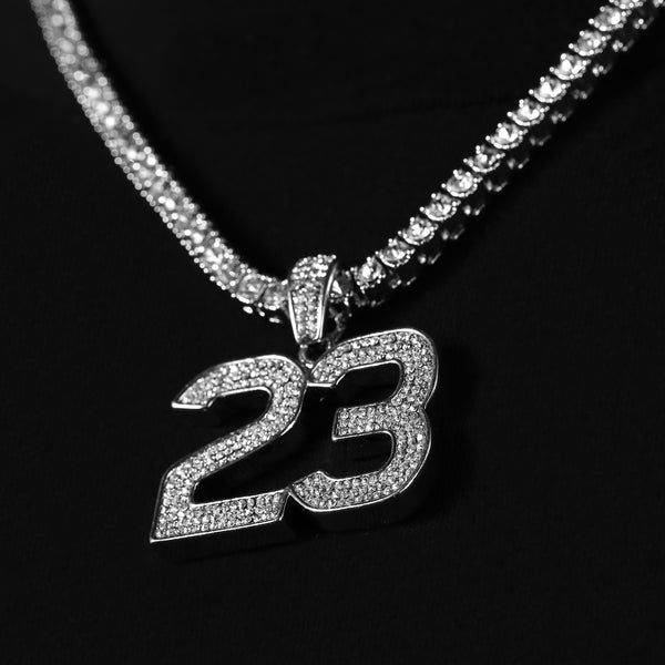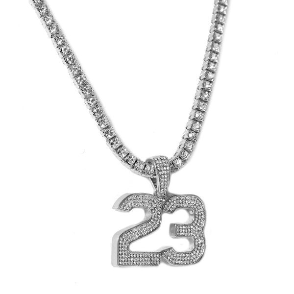 Cubic-Zirconia Thick 23 Pendant Silver Plated Tennis 18" Chain Choker Necklace