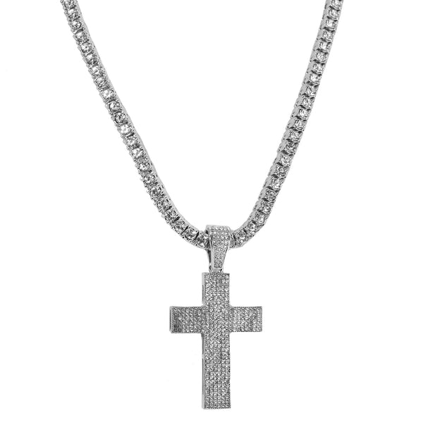 These are hot 1 Pcs of 18"tennis chains with trendy Thick Layer Cross Pendant which made with incredible details and craftsmanship. 3 wearing way:1. CZ tennis chain + pendants; 2....