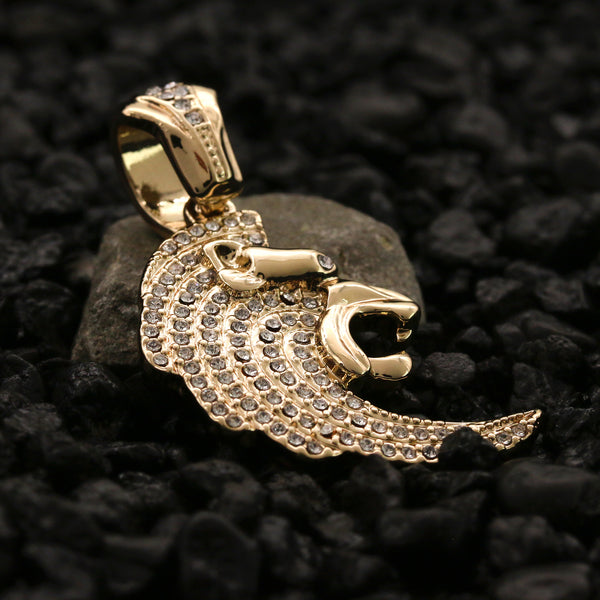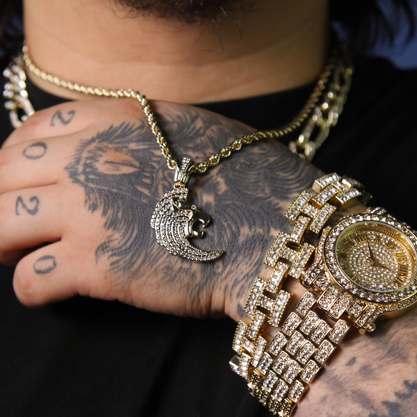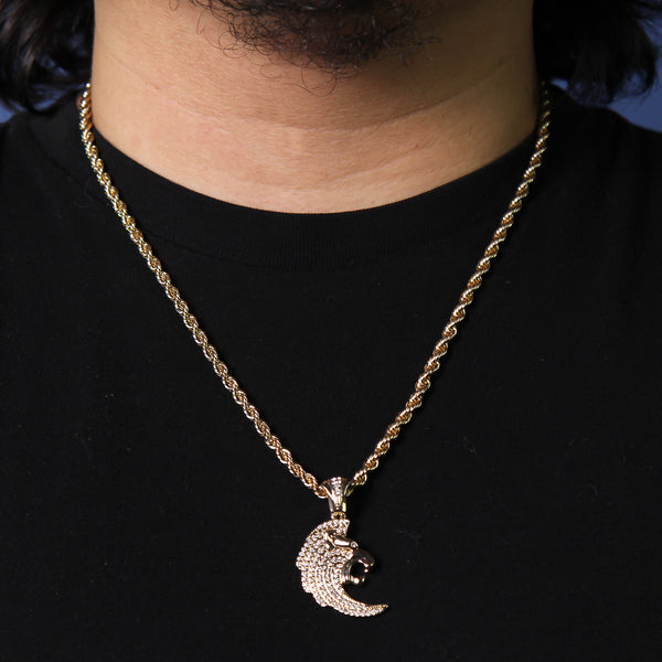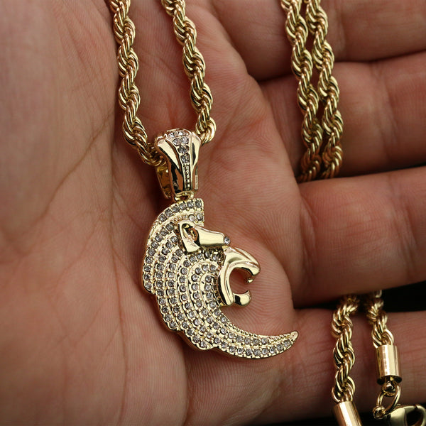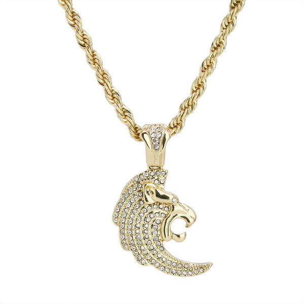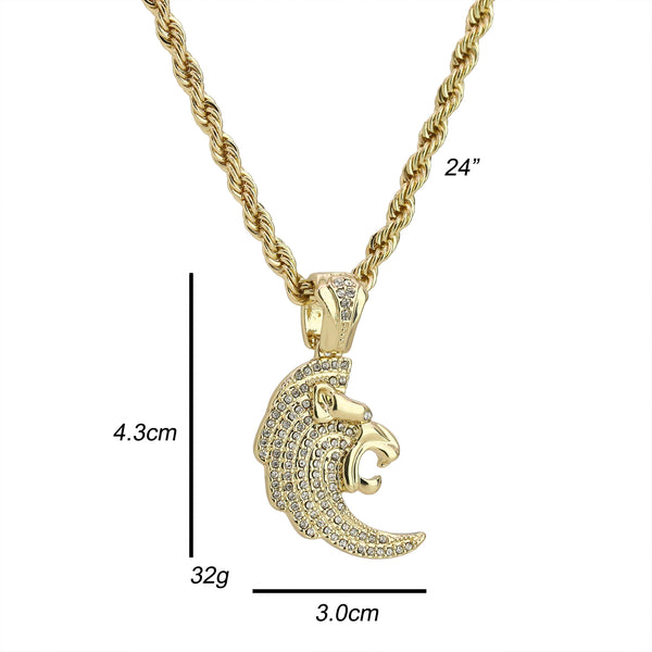 Cz Curved Lion Head Pendant 24" Rope Chain Men's Hip Hop Style 18k Jewelry