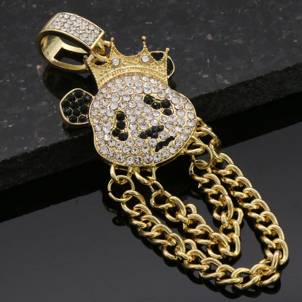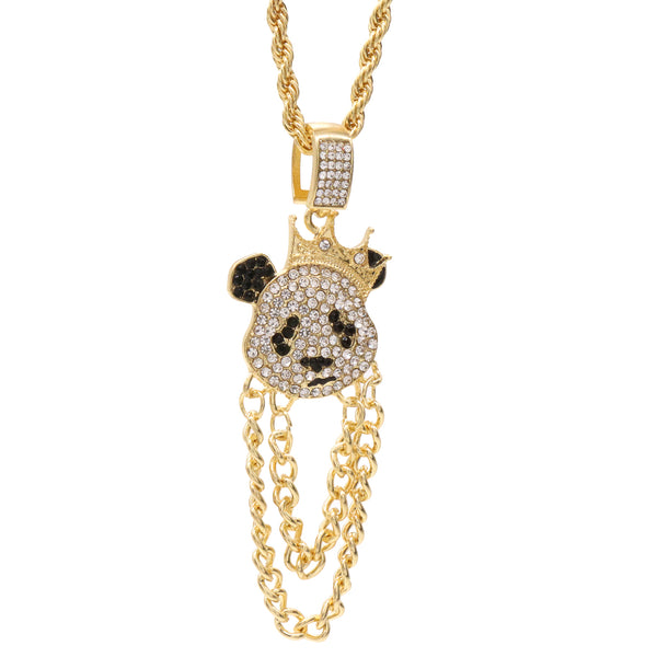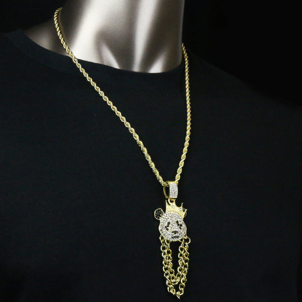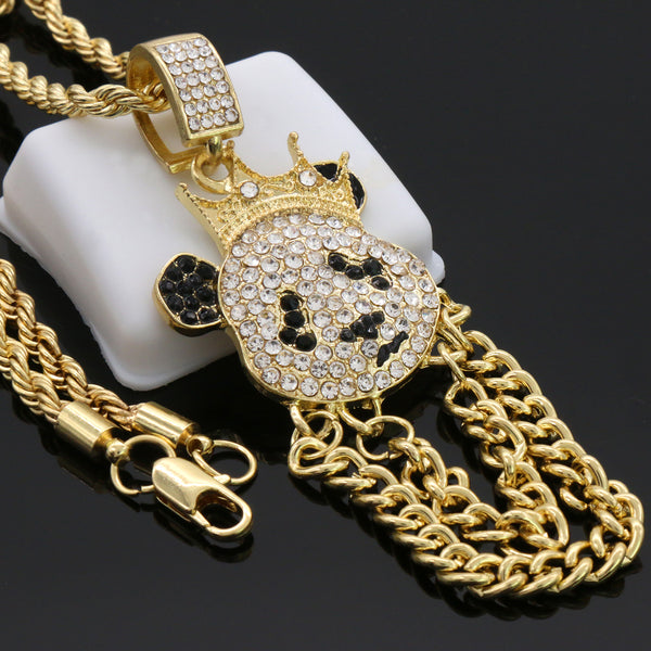This is an Iced Out Cz Panda Crown Pendant hanging from a 24" Rope chainĀ . Each and every stone on this pendant is prong set, same as real diamonds. The...