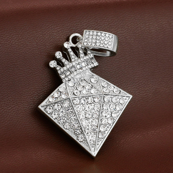 Diamond Crowned Iced out Pendant Silver Plated Franco Chain 4mm 20"